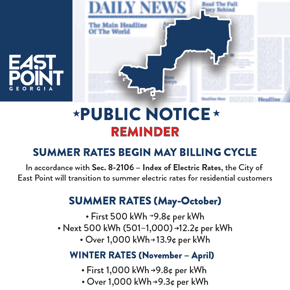Our phone numbers are changing! Please take a few moments to update your City of East Point phone records because we never want to miss a call from you! And if you need to call us now, here is the city’s main line: 404-551-3988