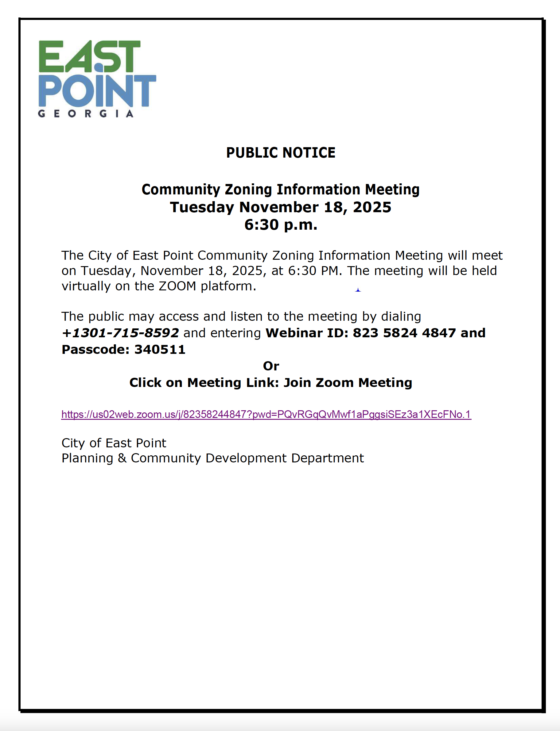 Community Zoning Information Meeting