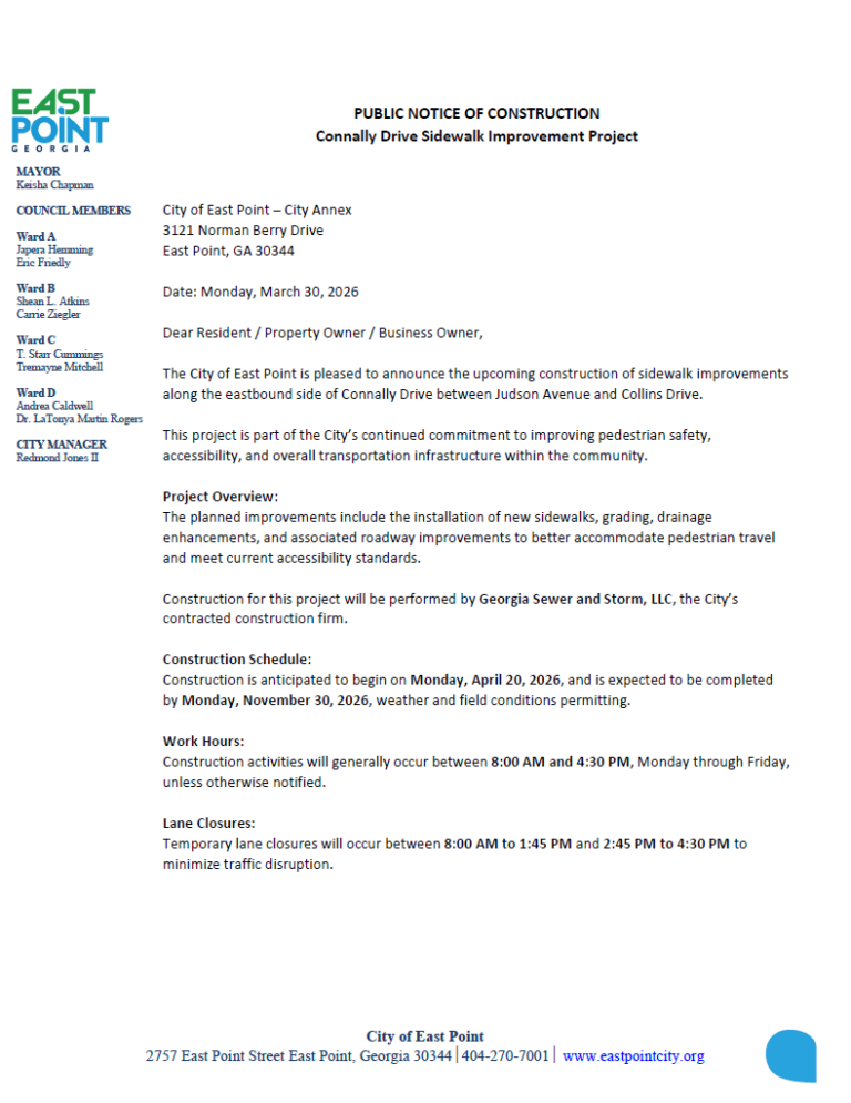 - City of East Point, Georgia Notice Under the Americans with Disabilities Act