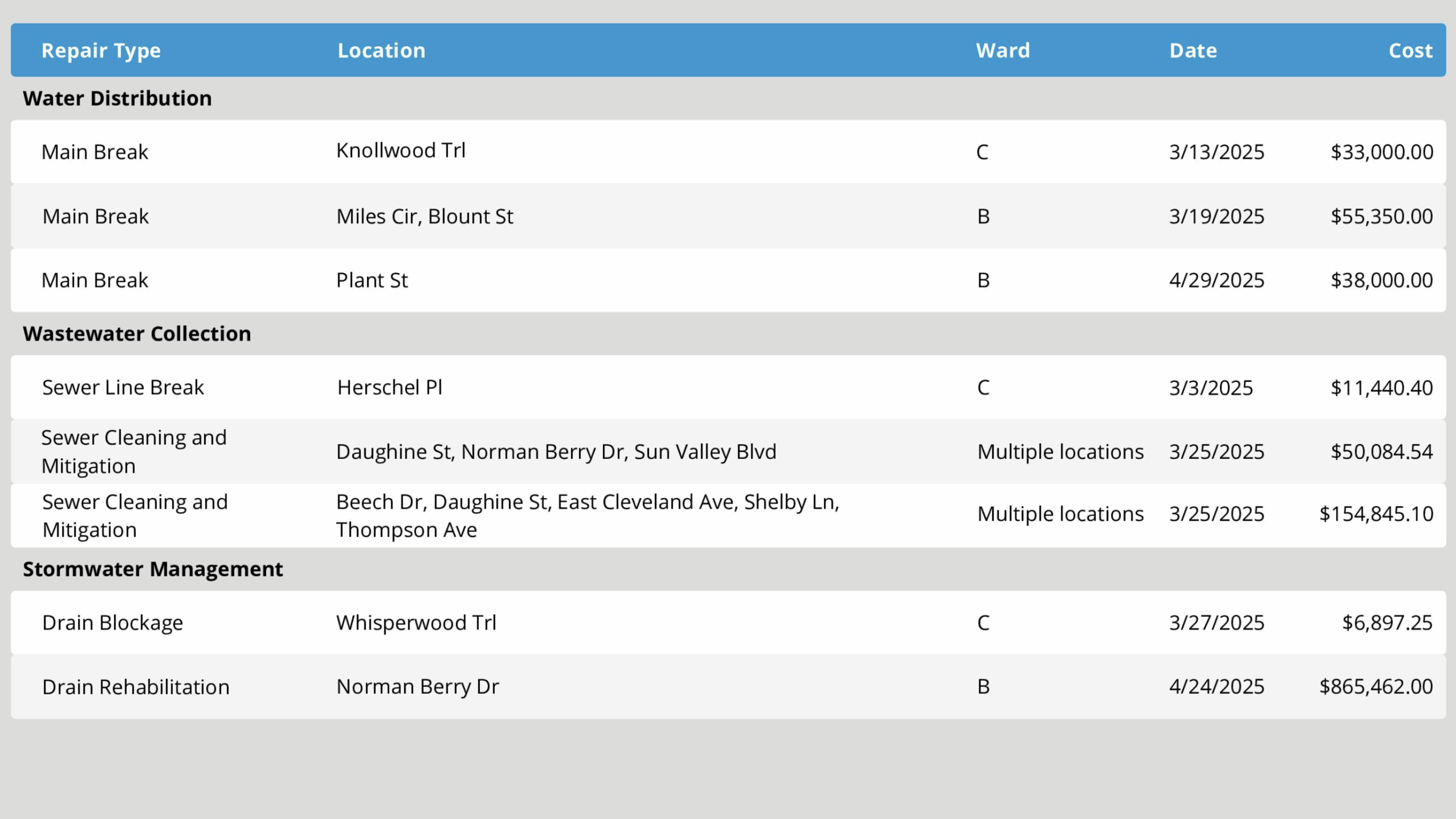 Consisting of only 10 employees, the Water Line Maintenance Division’s responsibilities include maintaining: