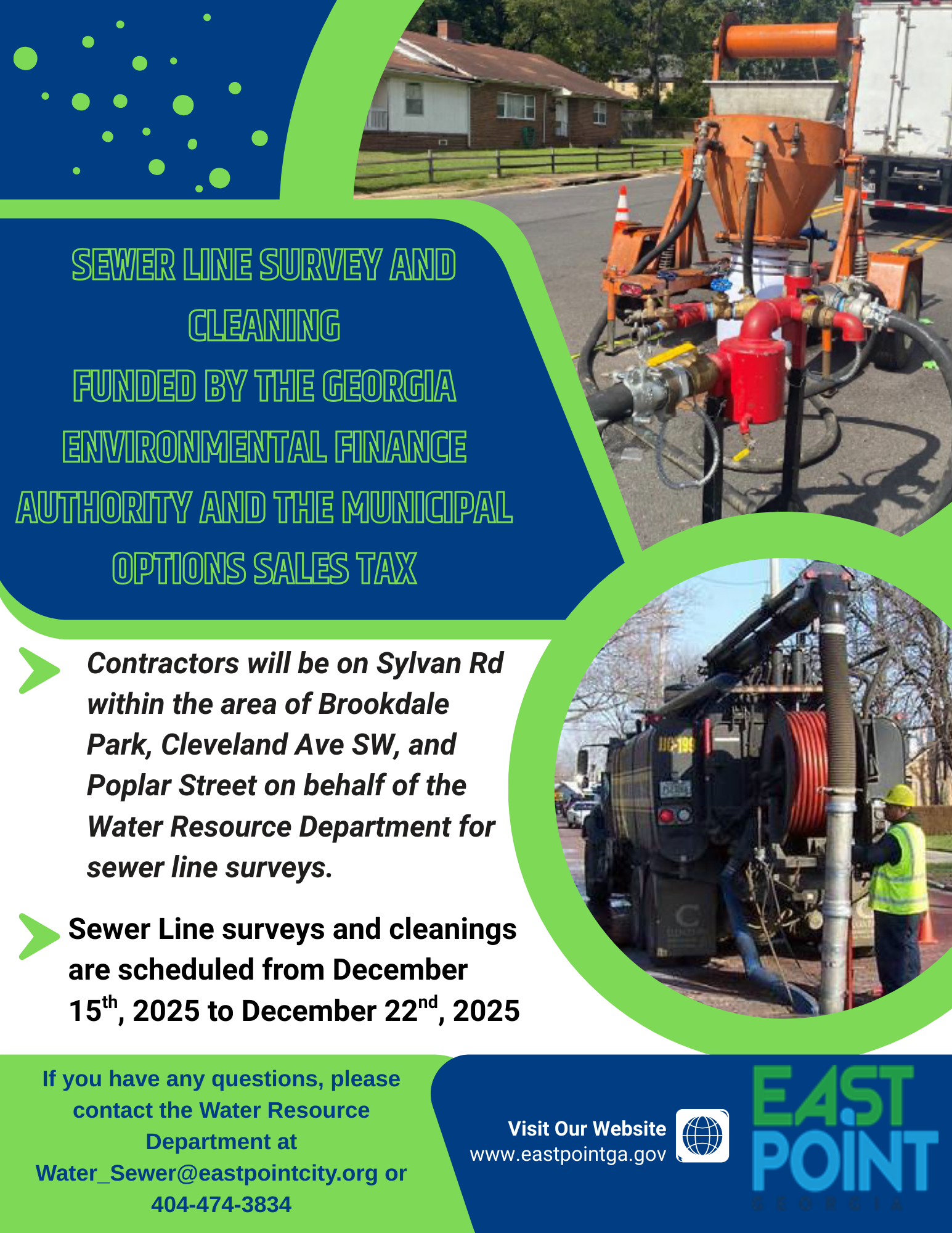 The City of East Point Water and Sewer Engineering and Construction division is dedicated to providing cost competitive engineering design, project management, real property management, construction management, inspection, and technical/operating support services in coordination with East Point’s Capital Improvement Program. The results of this effort provides East Point’s ratepayers with more reliable, high quality and cost effective water and sewer projects and service.